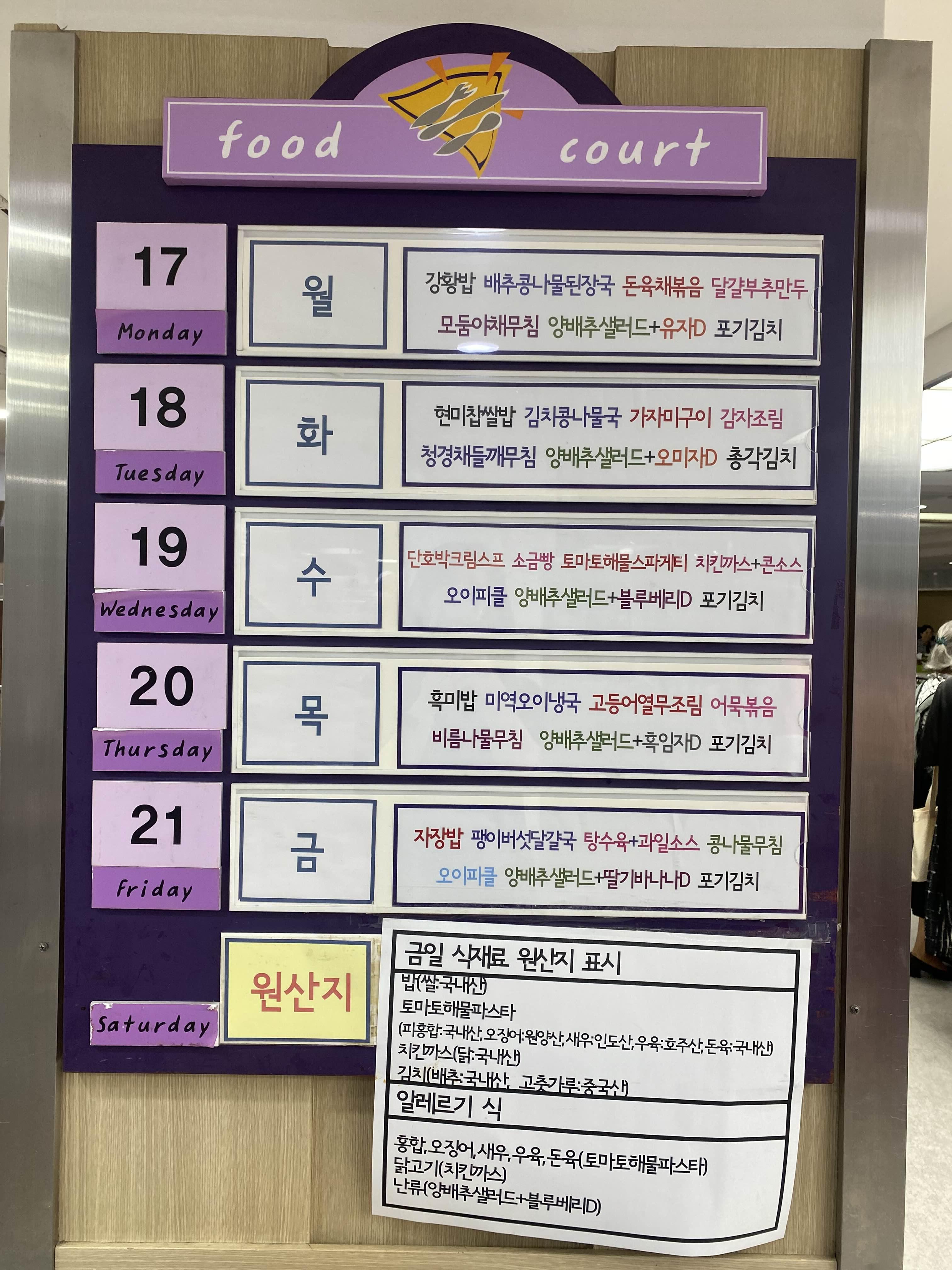 메뉴는 서대문구청 구내식당 메뉴 게시판에 공개되는데, 일주일치 메뉴를 구내식당 안에 월요일에 공개합니다. 영양사분께 여쭈어보니 본래 직원 내부식당이기 때문에 홈페이지나 외부에서는 확인 할 수 없다고 합니다. 이러한 서대문구청 구내식당 메뉴를 제 블로그에서 확인하실 수 있습니다.