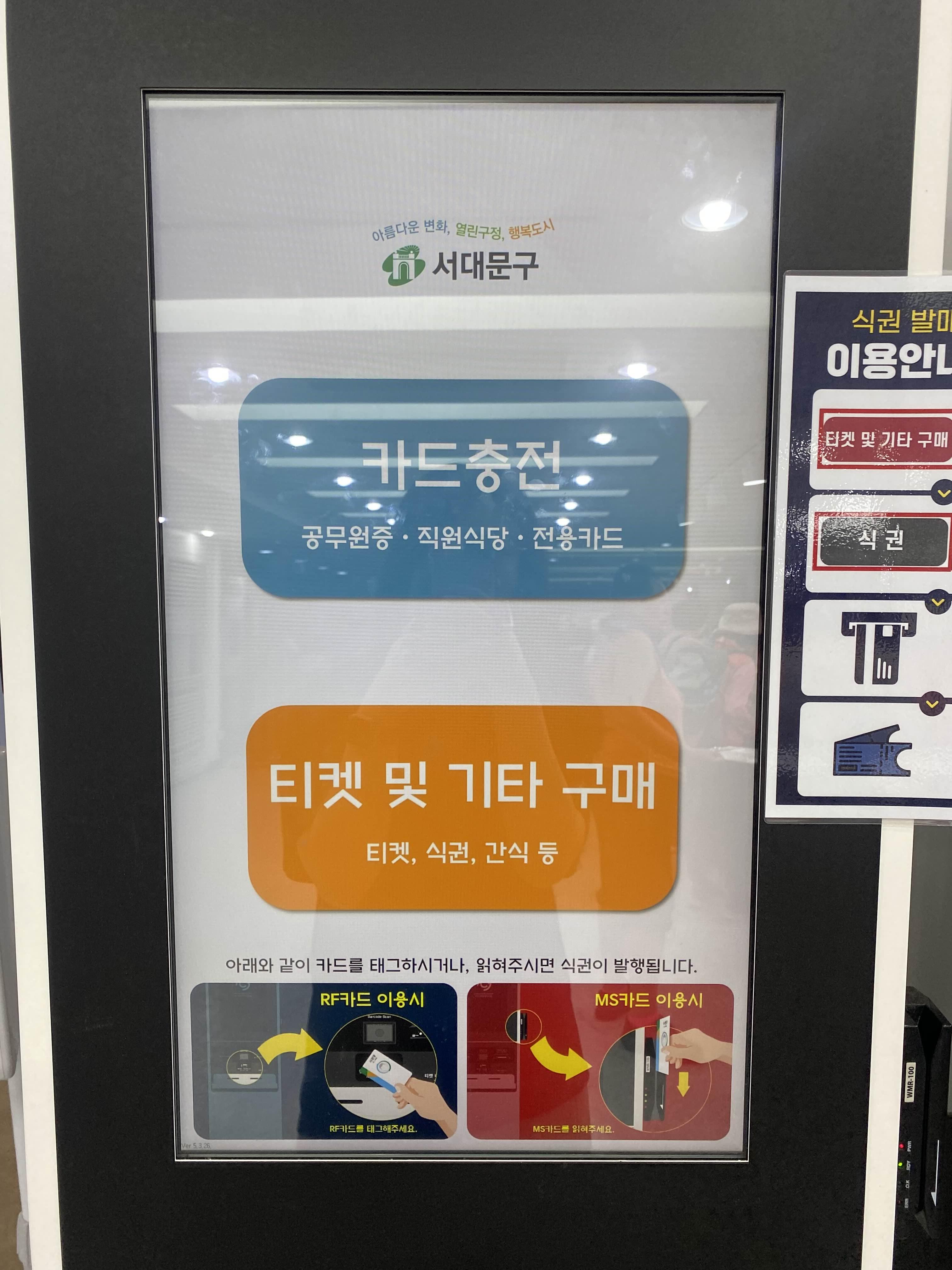 서대문구청 구내식당에 도착하시자마자 식단 티켓을 먼저 구매하시는 것이